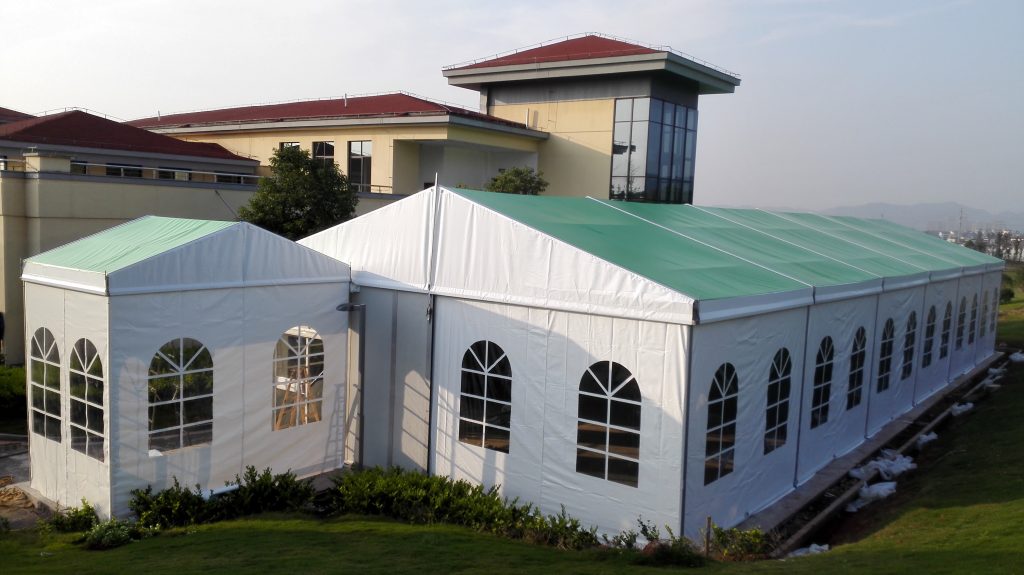 篷房(譯Fabric Building),是由輕質(zhì)鋁合金或鋼材、蓬布等搭建成的一種新戶外臨時型或長期搭建型建筑,具有外形多樣、安全可靠、重復使用、拆裝靈活、儲運輕便等特點。