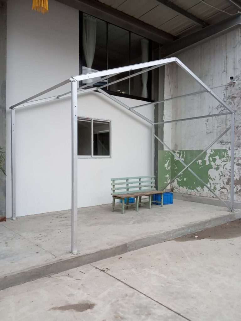篷房從外觀來看,主要是形狀的不同,也就是頂部形狀和圍布材質(zhì)的不同。內(nèi)部結(jié)構(gòu)會根據(jù)篷房的跨度作一些調(diào)整,比如跨度大的,需要加固,會增加鋼絲繩和剪刀撐的數(shù)量。不論是德國篷房還是中國篷房,使用5-10年沒有問題。德國篷房由于天氣原因,框架材料的選用上使得抗風等級略微高些,中國篷房的抗風能力為8-10級。