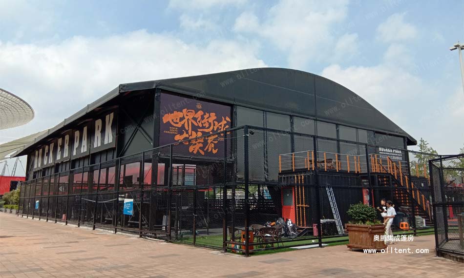 隨著人口的增加和人們生活水平的提高,各種大廈如雨后春筍般拔地而起,人們戶外活動的空間不斷被壓縮,各種戶外體育館更是由于維護(hù)成本以及運(yùn)營成本高昂而不得不提高收費(fèi)標(biāo)準(zhǔn),導(dǎo)致流失不少中低端客戶。此外,傳統(tǒng)體育館更有施工周期長,維護(hù)成本高,用途單一的特點(diǎn)而不受商家歡迎。奧騰集成篷房針對這些傳統(tǒng)體育場館的劣勢,提出了一種全新的體育館篷房設(shè)計(jì)方案。這種體育館篷房既可反復(fù)拆卸使用,又可以作為籃球館、足球場、羽毛球場等,可謂是“一個篷房,多個場館”!