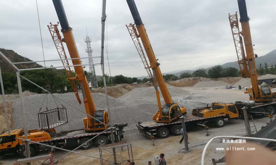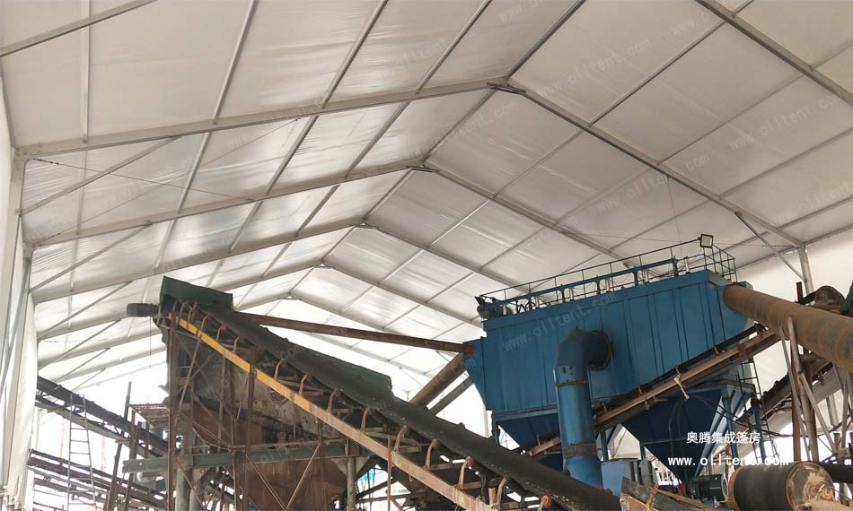 后來老板介紹道:“這是江蘇一家工廠研發(fā)出一種裝配式的廠房,跨度可達(dá)80米、長度無限延伸、高度10多米,能抗風(fēng)載雪,材料也是高度符合環(huán)保要求。 如果不蓋棚子,這個灰到處飄,二十米內(nèi)全都是灰,路上草上樹上地上,到處都是。長年累月積累下來的灰,相當(dāng)驚人的。這樣做就把大部分灰留在了廠區(qū),不至于飄灑的哪里都是。像我做這個石料行業(yè)的,開采地點會時常變更,堆積物料的卸貨點也會變更,這就要一個遮蔽物隨著工作地點的變化而變化。而我現(xiàn)在使用的這種裝配式篷房就能輕松實現(xiàn),裝配式篷房就可以隨意搭拆,如果框架加上輪轂就可以實現(xiàn)篷房哪里需要哪里“走”。而且咱們也要積極樹立綠色治理理念,轉(zhuǎn)變思維,創(chuàng)新發(fā)展,為進(jìn)一步提升全市的生態(tài)環(huán)境治理和空氣質(zhì)量提升做出更大貢獻(xiàn)。”看來這位老板不僅會做生意,也非常有“覺悟”的!
