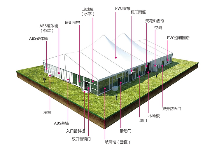 組合篷房帳篷以其優雅的流線型組合和生產工藝,深受國內外客戶的喜愛。它可以單獨使用或者與其他類型的大型篷房組合使用,就像是一座小小的房子,給我們提供了一個舒適安全的臨時空間。