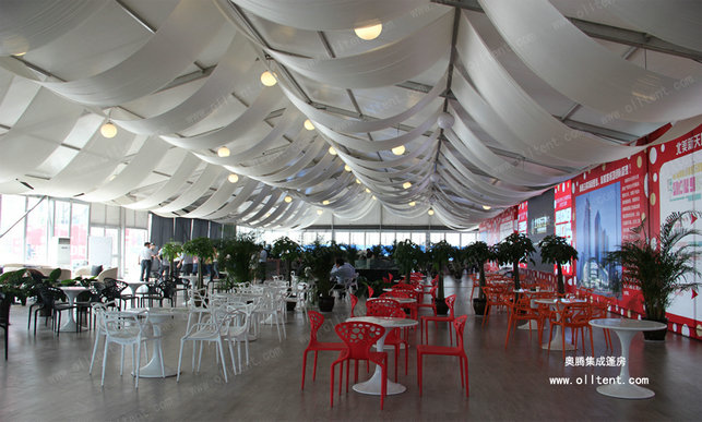 奧騰大型篷房可滿足于各種不同的活動需要。超大凈跨度:10-60米,模塊化結構,搭建工期短,易于組裝和拆卸。大型篷房外形優雅、搭建靈活、安全環保、防雨、防曬、防霉、阻燃,可抗8-10級大風,廣泛應用于各類戶外臨時性活動,作為臨時或長期建筑都是很好的選擇。