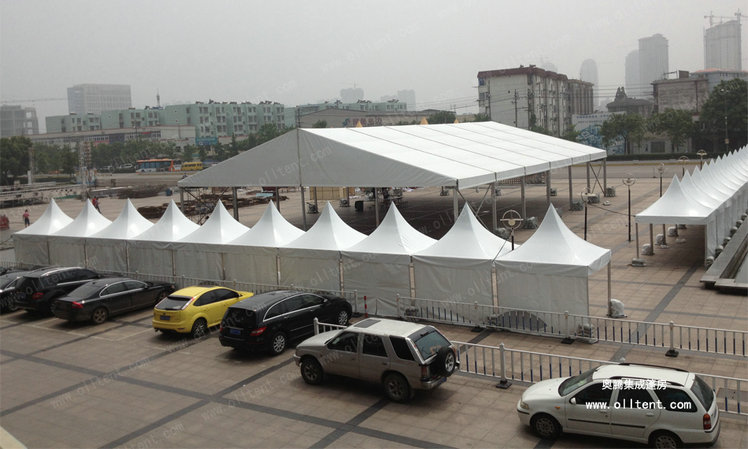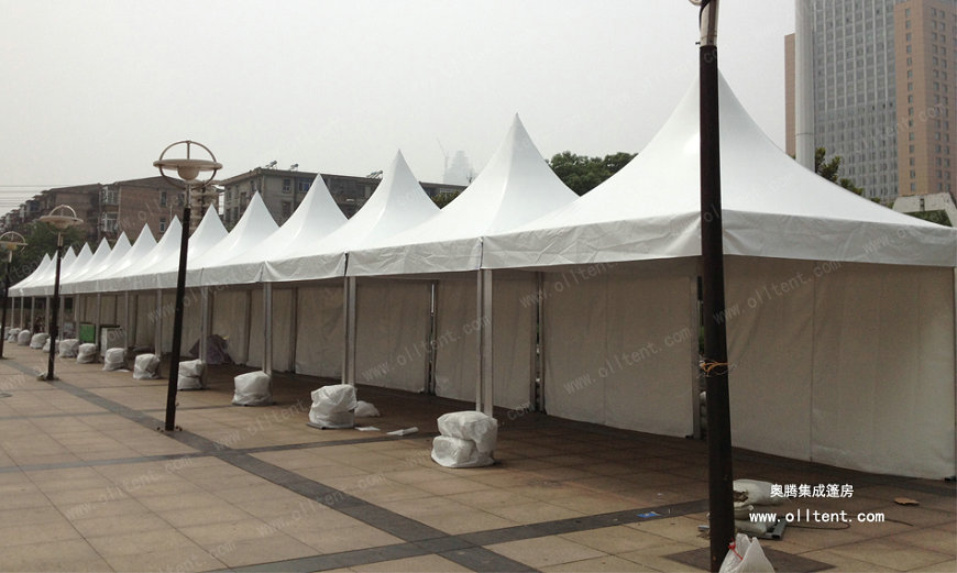 尖頂篷房優雅,堅固,潮流,搭建工期短,易于組裝和拆卸。新錐頂篷固定方式,已獲得設計專利證書,新的固定方式,不但大大減少了組裝時間,很好的防止滑出。無需大型機械協助,單個也可用排水槽連接起來組成更大的面積,形成特殊的造型。