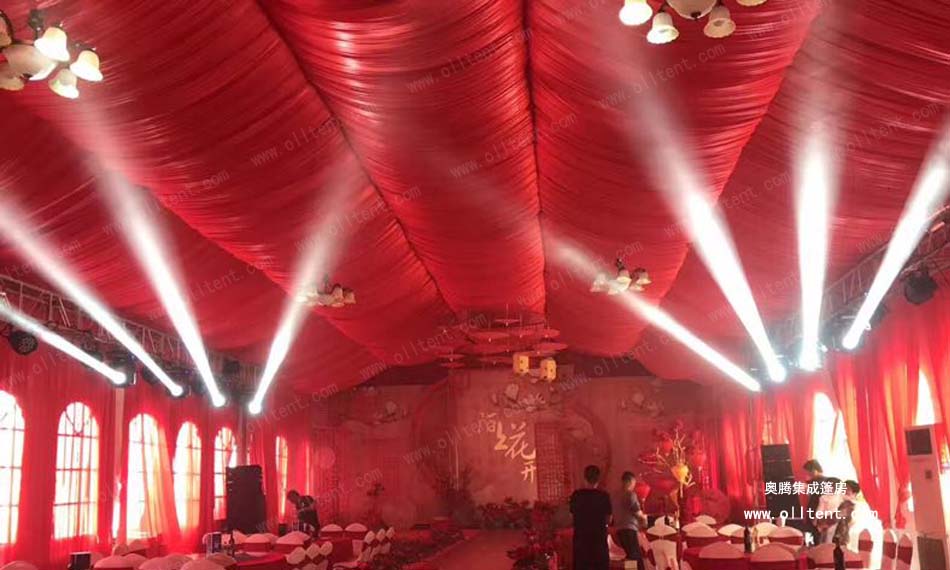奧騰篷房在婚禮篷房生產(chǎn)搭建方面有足夠的經(jīng)驗,有多種婚禮篷房產(chǎn)品供應,如人字頂篷房、歐式尖頂篷房、透明婚宴篷房等等,都適用于婚禮婚慶儀式,另外還有中式、歐式、田園、浪漫等風格可選。尺寸方面跨度可以從3-50m不等,長度可按3或5m的倍數(shù)無限延伸,不論是多大規(guī)模的婚慶篷房都可以滿足。在場地上的選擇和婚禮布置也是相當自由,戶外婚慶篷房在搭建上不受地形限制,所以你完全可以將婚禮選擇在浪漫的海邊沙灘、舒適自然的草地上舉行,并結合周邊環(huán)境和自己的想法隨意布置婚禮!