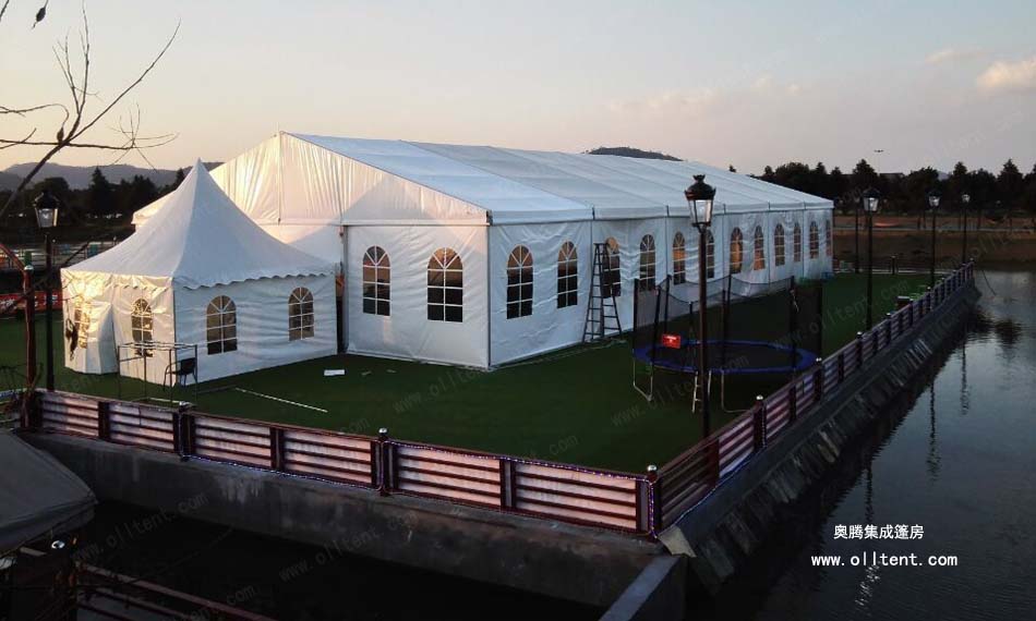 婚禮篷房是一種模塊化建筑,在出貨之前我們會試搭,所以用我們的篷房舉行婚禮宴會是安全的。同時,它也是很有成本效益的,鋁合金婚禮宴會篷房美觀耐用,框架可以使用15年以上,pvc篷布可以用5-8年。我們還會提供精美的天花布幔、燈光、音響、舞臺、桁架、地毯、空調、地板等配件,讓宴會篷房的功能更強大。