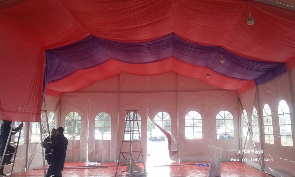 常州奧騰集成篷房提供的婚慶帳篷在形狀上有以下多種選擇:人字頂篷房,弧形頂篷房,歐式尖頂篷房,多邊形篷房,橢圓形篷房,混合型篷房等。另外,特殊需求還可以提供專業(yè)篷房定制服務(wù)。