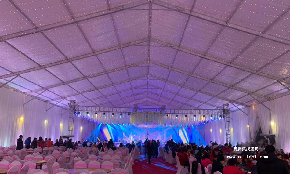 奧騰篷房在婚禮篷房生產(chǎn)搭建方面有足夠的經(jīng)驗(yàn),有多種婚禮篷房產(chǎn)品供應(yīng),如人字頂篷房、歐式尖頂篷房、透明婚宴篷房等等,都適用于婚禮婚慶儀式,另外還有中式、歐式、田園、浪漫等風(fēng)格可選。尺寸方面跨度可以從3-50m不等,長(zhǎng)度可按3或5m的倍數(shù)無(wú)限延伸,不論是多大規(guī)模的婚慶篷房都可以滿足。在場(chǎng)地上的選擇和婚禮布置也是相當(dāng)自由,戶外婚慶篷房在搭建上不受地形限制,所以你完全可以將婚禮選擇在浪漫的海邊沙灘、舒適自然的草地上舉行,并結(jié)合周邊環(huán)境和自己的想法隨意布置婚禮!