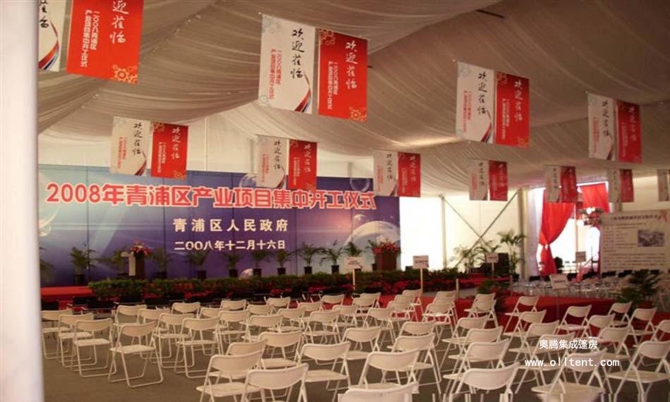 開工典禮篷房能夠讓您的開工儀式更加氣派,為您的VIP客戶提供一個(gè)更好的臨時(shí)酒店。開工典禮上,無論是在晴天,還是在雨天,都能夠?yàn)槟峁┮粋€(gè)臨時(shí)的空間。