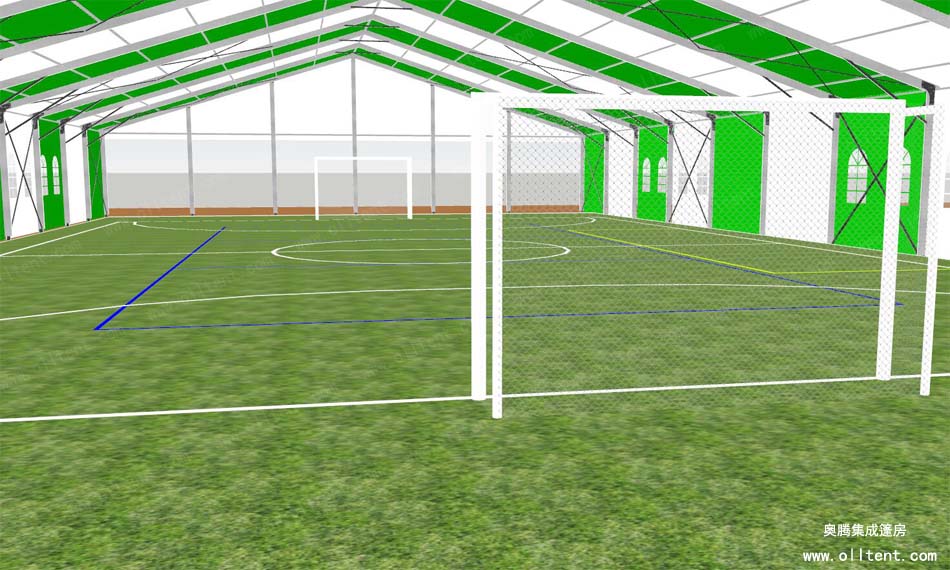 足球場篷房長度無限制,標(biāo)準(zhǔn)跨度包括:10 米、15 米、18 米、20 米、25 米、30 米、37 米及 40 米;除標(biāo)準(zhǔn)尺寸范圍以外,我們還可以生產(chǎn)預(yù)加工多功能體育賽事篷房,以滿足客戶的具體場地要求。例如,滿足具體場地的風(fēng)荷載和雪荷載要求,以符合當(dāng)?shù)氐囊?guī)劃控制要求,或采用特殊的寬度和長度,以及不同的檐脊高度,以滿足最大場地覆蓋的體育賽事要求。