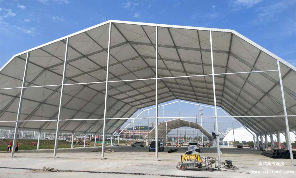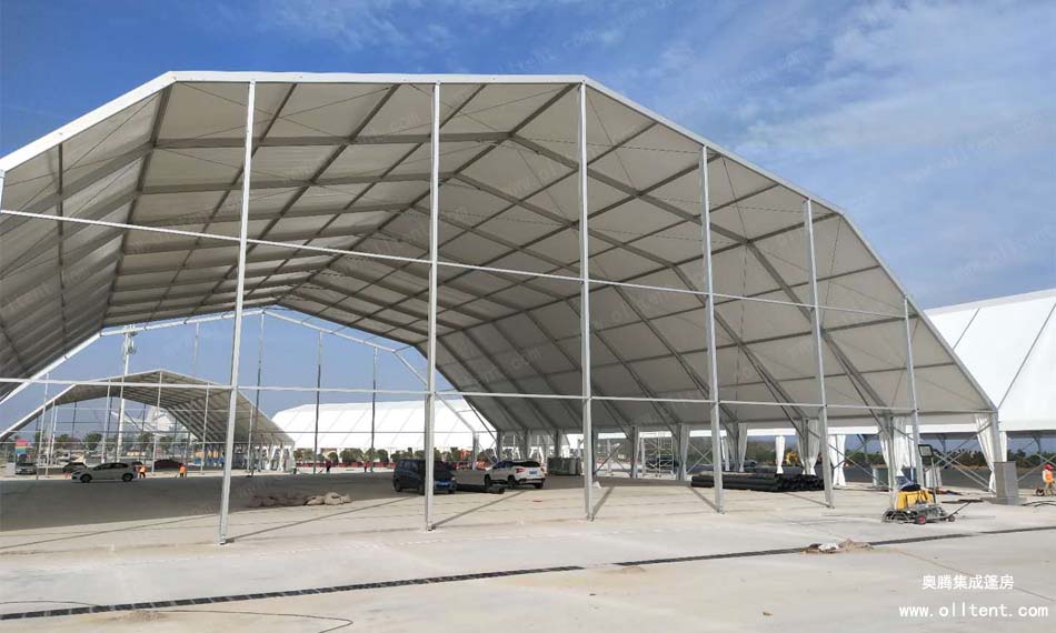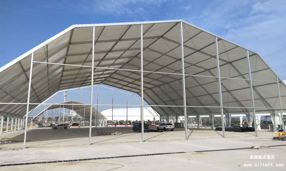 奧騰多拱形篷房的斜梁采用多條鋁合金斜梁拼接而成,并由多邊形而組成,故命名為多拱形篷房。