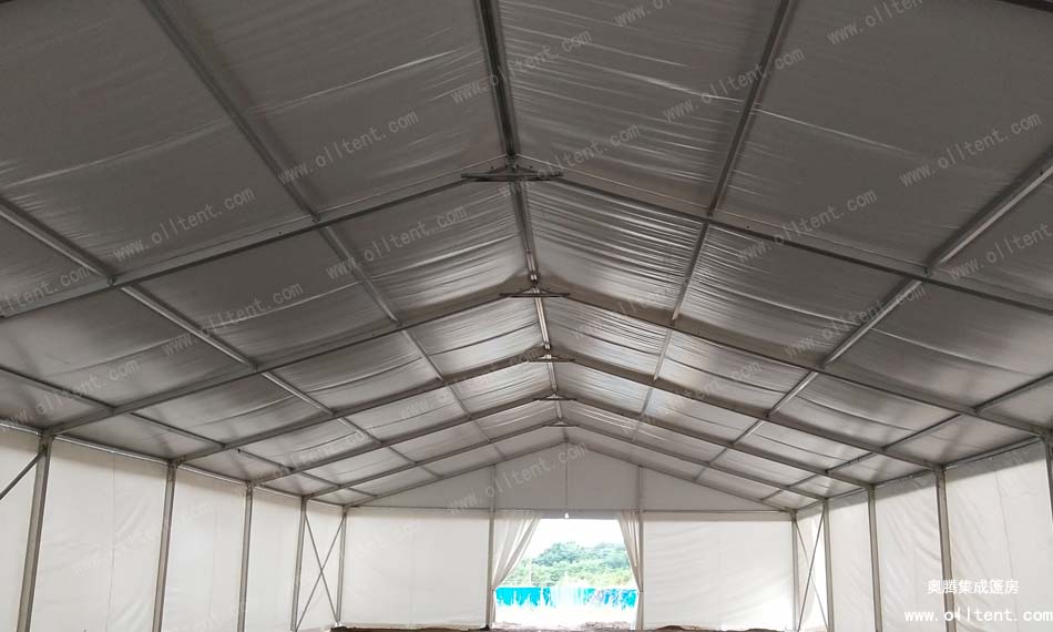 倉儲篷房透光性能好:倉儲篷房主要有鋁合金框架及篷布組成,篷布具有良好的透光性能,并能有效阻擋紫外線,光線柔和舒適,白天無需照明,節約耗電,降低成本,當然也可以選擇不透明篷布,達到良好的遮光效果。