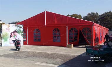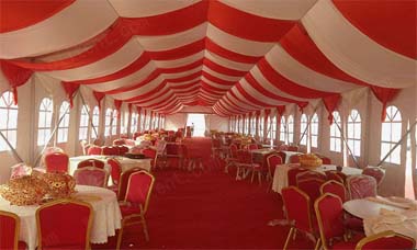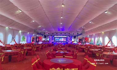 奧騰婚慶篷房采用單元組合式設計,長度可按5米間距增加或減少,可根據婚禮宴會規模量身定制。