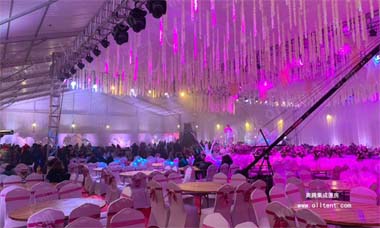 奧騰婚慶篷房采用單元組合式設計,長度可按5米間距增加或減少,可根據婚禮宴會規模量身定制。